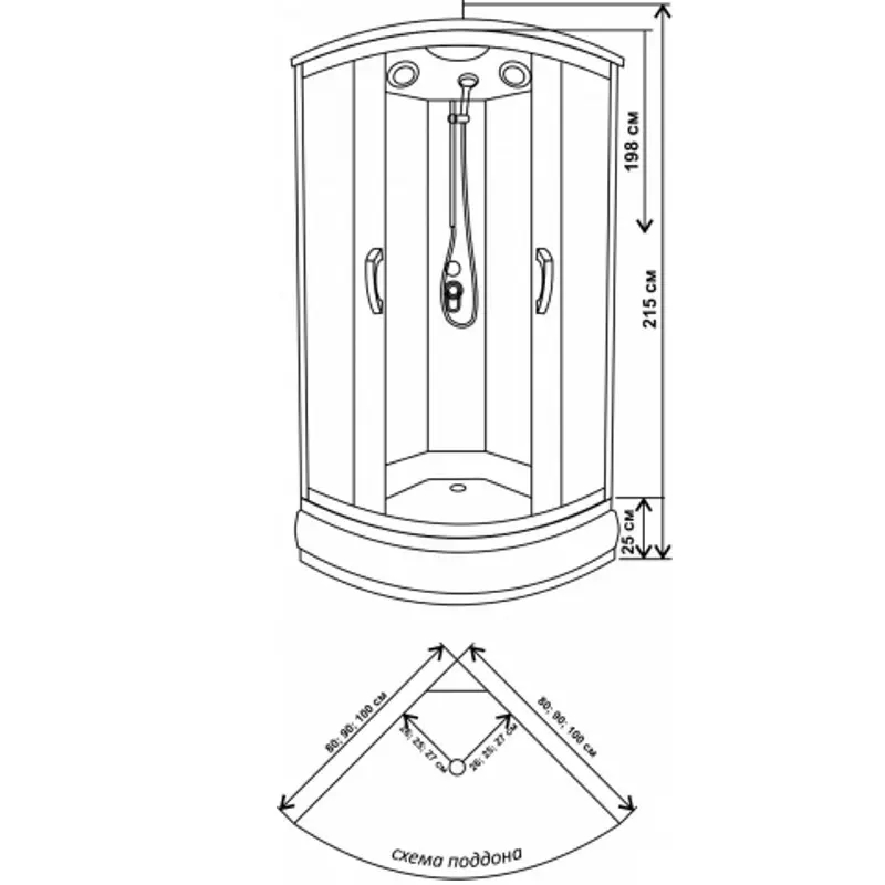Габариты 90 × 90 × 215 см