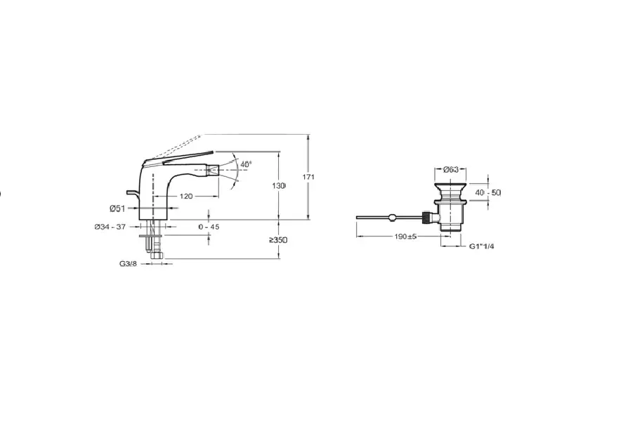 Смеситель для биде Jacob Delafon Avid с донным клапаном E97014-CP