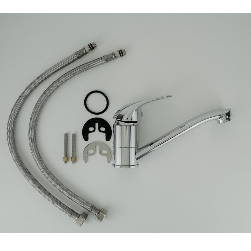 Смеситель для кухни Esko Rio Rio 15 имеет поворотный излив. Изготовлен из качественной латуни и имеет защитное покрытие, что способствует устойчивости к коррозии и резким перепадам температуры. Рычажное управление, горизонтальный монтаж на одно отверстие.